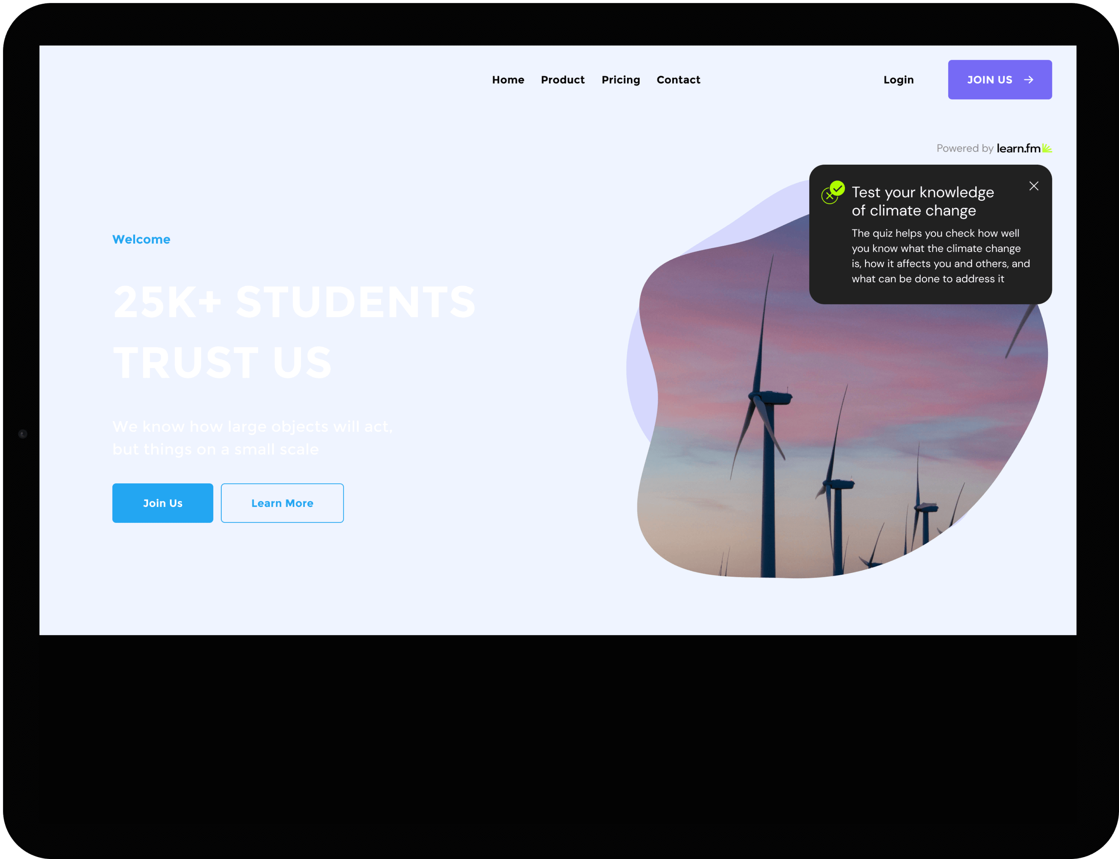 The widget allows you to conduct micro-training and tests for visitors, arrange quizzes, as well as add useful information. Zero cost widget integration.